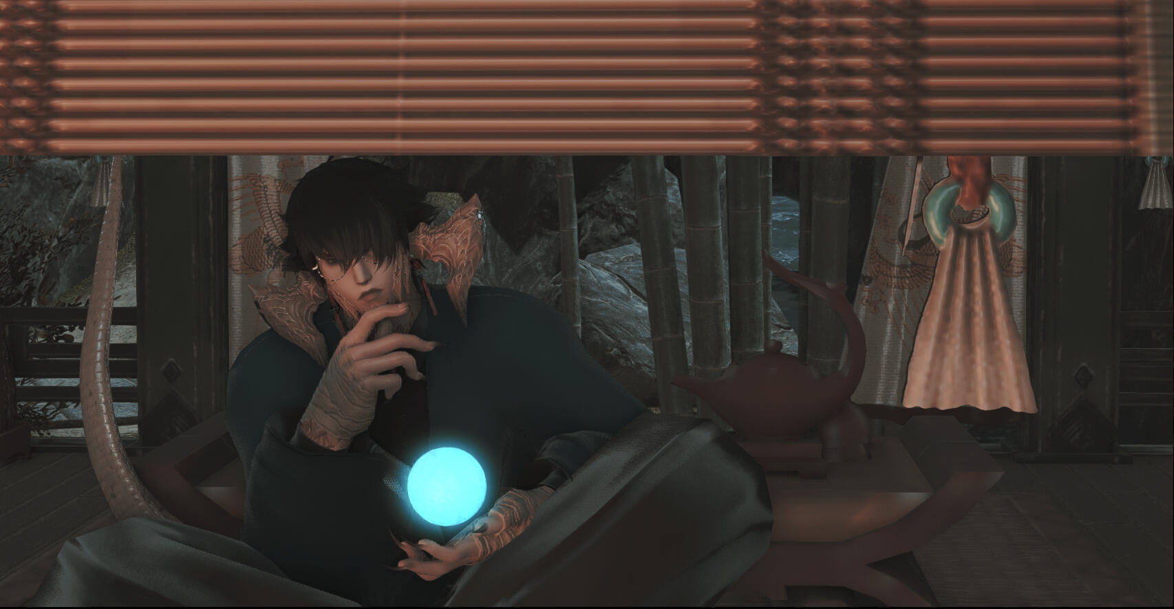 Zansetsu's grandfather, he is the man who raised him since his arrival to Kugane. He is a man Zansetsu respects and keeps close contact with, mostly privately. His grandfather refuses to speak to anyone but his family.