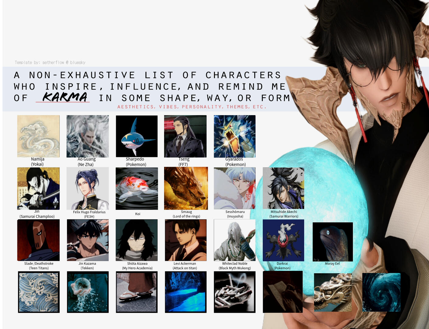 A kojin shaman that aided zansetsu in training his aether to flow in a tame way with the tides. A close friend of zansetsu’s parents who was around for majority of zansetsu’s childhood